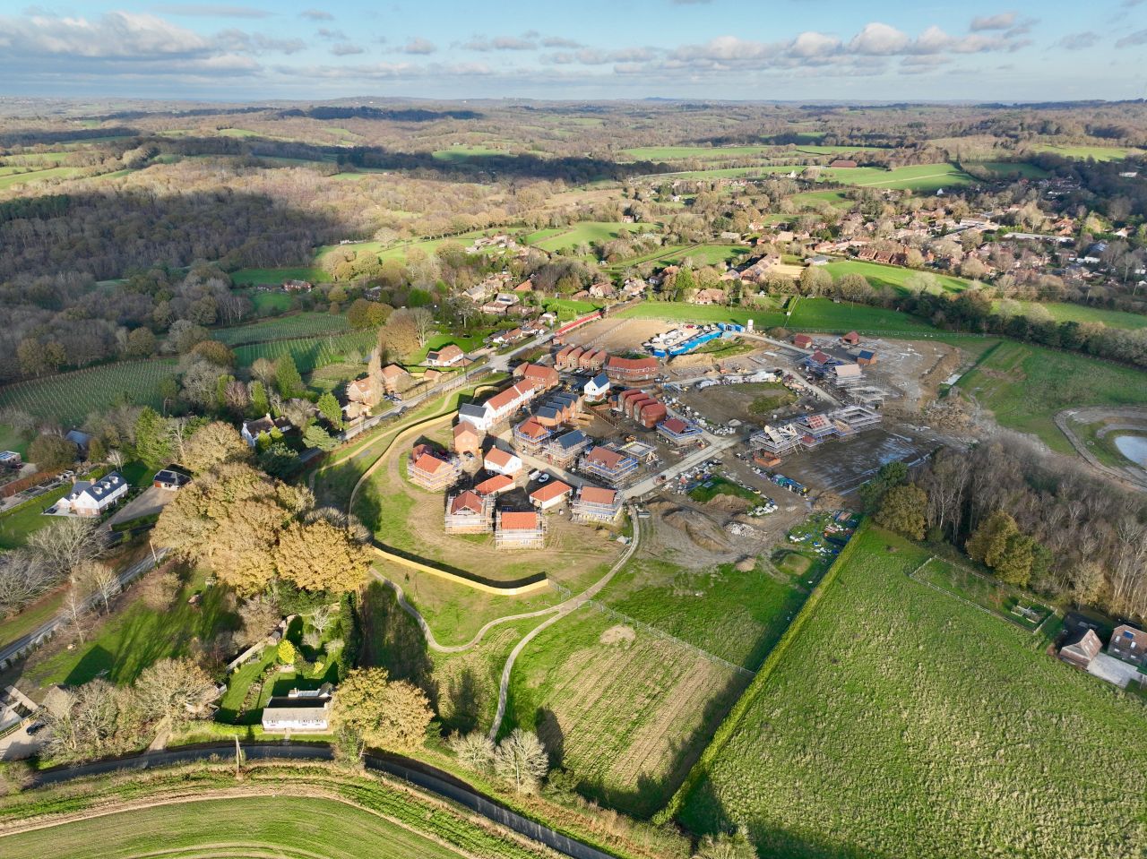 We looked carefully at the logic of village life — where homes cluster around shared greens, where certain streets feel close-knit, and where others gradually open out toward the countryside. That understanding shaped the structure of the masterplan: a central green, a mix of terraced and detached homes, and a rhythm of public/private proximities designed to support everyday neighbourliness.