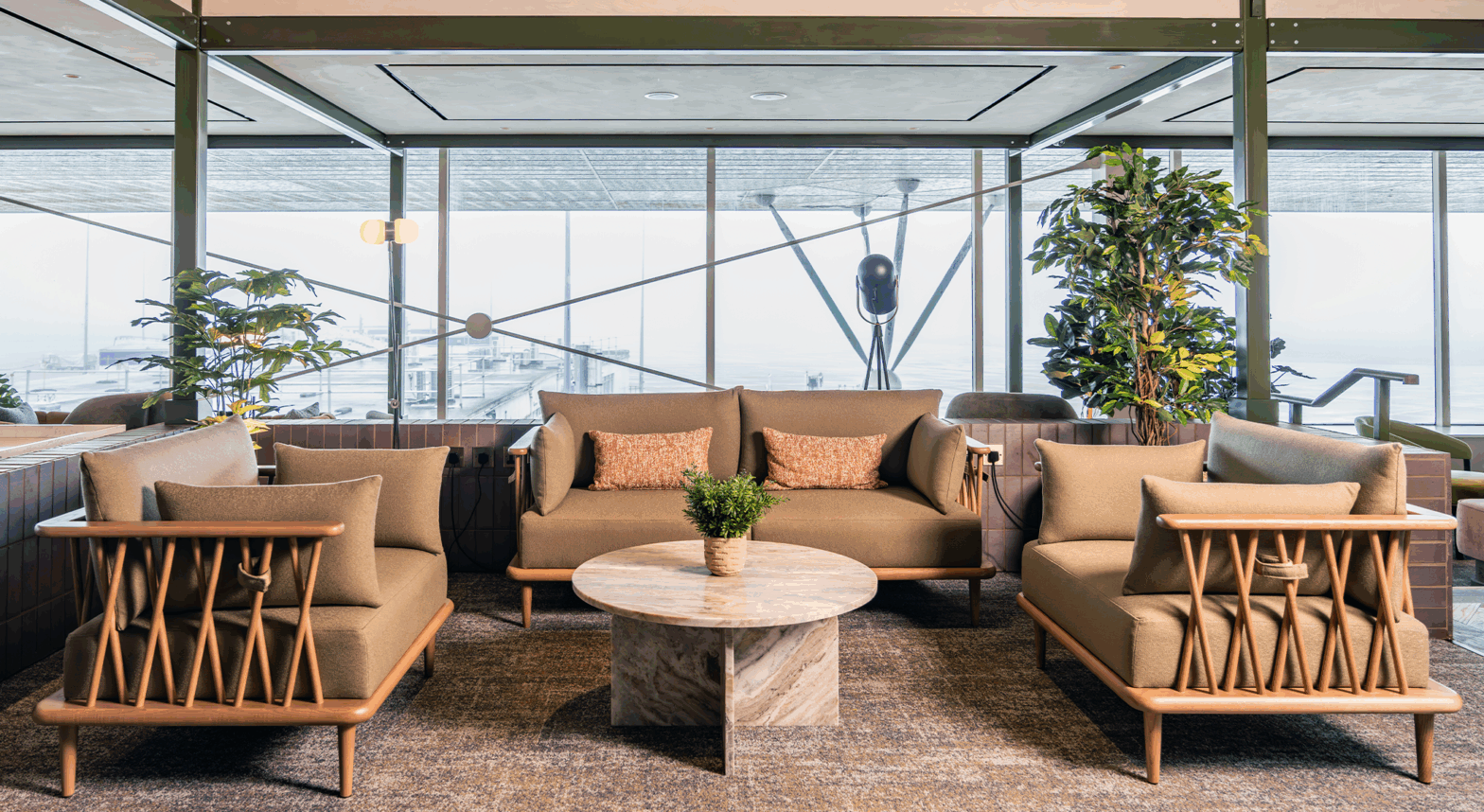 The Jersey No1 Lounge at Jersey Airport reflects the No1 Lounges brand identity — welcoming, hybrid, boutique, and iconic — while expressing the unique character of the island. The concept takes cues from Jersey’s natural beauty, craftsmanship, and rich horticultural heritage, creating a space that feels both grounded and aspirational.